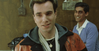 The film tells the story of wealthy Pakistani Omar (Gordon Warnecke) and underprivileged Brit Johnny (Daniel Day-Lewis) who, amidst various racial, political, and ideological tensions around them, start a laundrette. And a relationship!